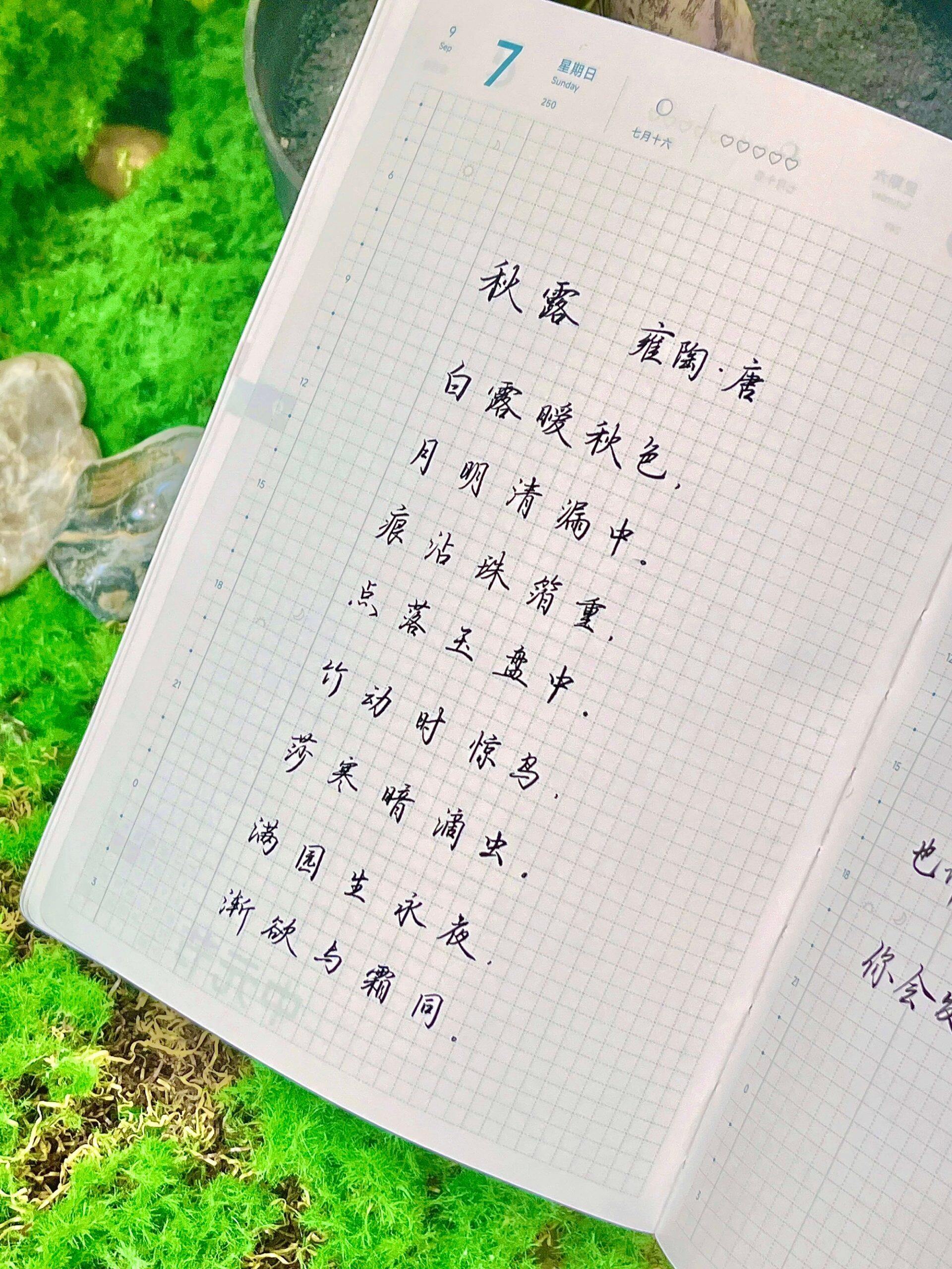 白露|二十四节气|乙巳年 9 月 7, 2025 | 二十四节气, 自在心语 #二十四节气#秋露雍陶·唐白露暧秋色,月明清漏中。痕沾珠箔重,点落玉盘空。竹动时惊鸟,莎寒暗滴虫。满园生永夜,渐欲与霜同。 自在手帐每日心语2025年9月7日