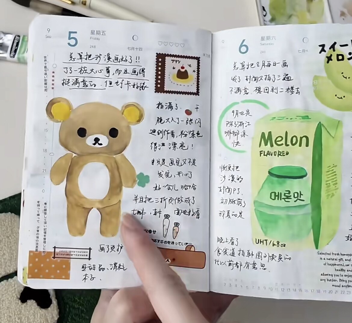 来自某红薯用户摸蘑抹墨的五月份手帐翻翻看。
