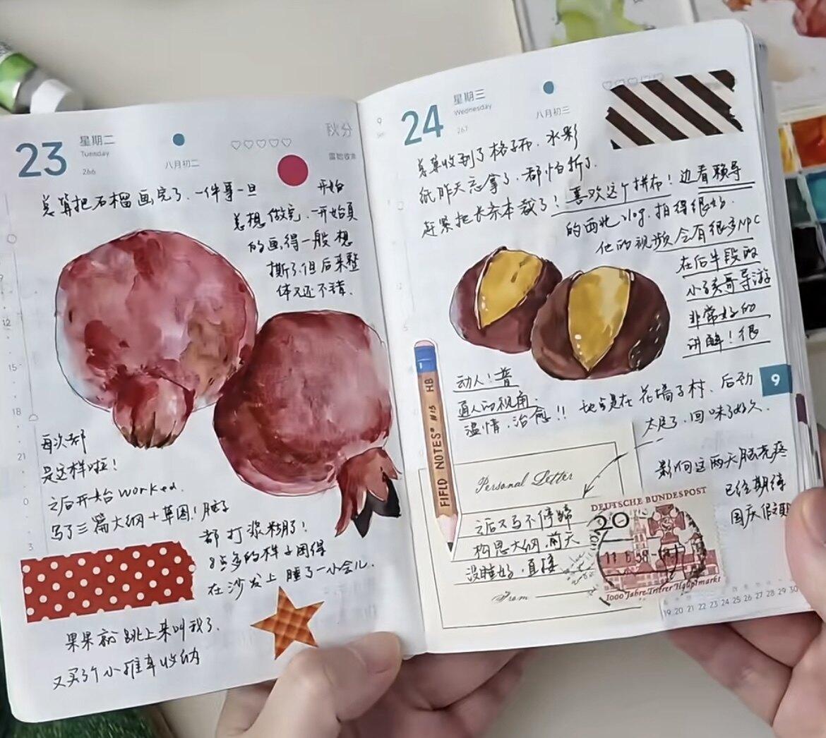 不出门的日子也在各种找时间画画,水果、美食、咖啡、昆虫、植物等,都是可以画的灵感和素材,还做了新的水彩本,就这样保持画画的手感和热爱其他内容视频见吧!跟我一起画画!你也能从画画中得到快乐